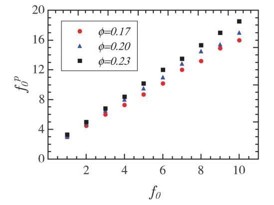 由于點(diǎn)偶極子模型的簡單性,值得尋找兩個(gè)模型之間的對(duì)應(yīng)關(guān)系。為此,我們確定了一組f0在三個(gè)不同面積分?jǐn)?shù)下的有效相互作用強(qiáng)度f p0。對(duì)于感興趣的參數(shù)范圍,可以在圖10中看到f p0和f0之間的關(guān)系。該圖有助于選擇適當(dāng)?shù)膄 p0,以便通過僅基于更簡單的點(diǎn)偶極子模型進(jìn)行模擬來計(jì)算單層的結(jié)構(gòu)特性。或者,如果實(shí)驗(yàn)對(duì)相關(guān)函數(shù)由點(diǎn)偶極子近似建模,則sffi ep的值可以使用根據(jù)該圖估計(jì)的相應(yīng)f0計(jì)算。