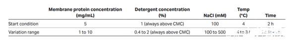 為保證膜蛋白的溶解效率,需要對去垢劑類型及濃度進(jìn)行篩選: