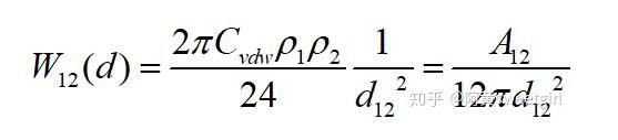 同樣,若取l為兩相界面處分子間的距離d12,且兩半無(wú)限體為兩種不同的物質(zhì)時(shí),則互作用勢(shì)變?yōu)?