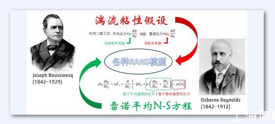 湍流粘性來源于雷諾平均的N-S方程,下式中多出來的脈動應力項,稱之為雷諾應力。1877年Boussinesq借助于牛頓切應力公式,提出了影響深遠的渦粘性假設:雷諾應力正比于時均速度梯度,其中比例系數(shù)μt表征了湍流脈動引起的切應力效應,稱為渦粘性系數(shù)。
