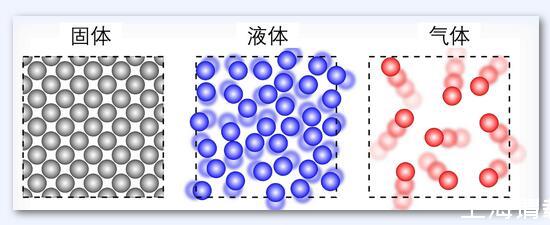 下圖對比了固體、液體和氣體的分子排列示意圖,可以看出來,固體分子排列緊密且有序,分子之間被分子力牢牢控制而難以發(fā)生隨意的運動。液體分子則不會保持固定的形狀,但它們仍然致密排列,就像游樂場里的海洋球,因此,液體的分子之間仍具有一定的分子力,而這也是液體粘性的主要來源。