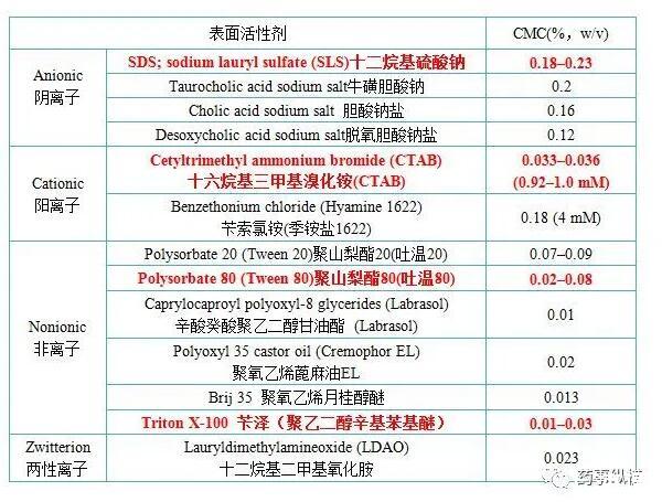 常見(jiàn)表面活性劑的種類(lèi)及臨界膠束濃度
