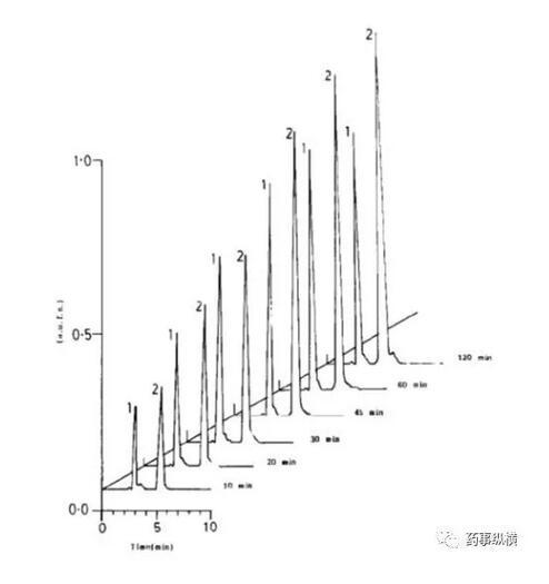 利福平在酸溶液中的降解情況(3、4為兩個(gè)降解物峰)
