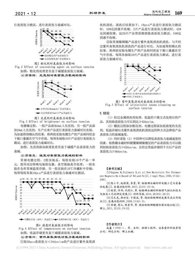 摘要:釹鐵硼永磁材料表面鍍覆光亮鎳銅鎳,可以很好的增加釹鐵硼永磁材料的耐腐蝕性;但與此同時對鍍覆光亮鎳銅鎳的釹鐵硼永磁材料進行裝配使用的過程大多會采用粘接的固定方式,由于其鍍層特性,表面會比較"滑",為了保證其固定效果,就需要對其表面張力進行管控。通過控制變量法研究確認鎳銅鎳鍍層表面張力的影響因素(干燥方式、粗化劑濃度、光亮劑濃度、存儲溫度、是否表明特殊清洗),最終提高鎳銅鎳鍍層的表面張力,初始表面張力≥42dyn/cm,存儲四個月后≥36dyn/cm,對后續(xù)有張力要求的鎳銅鎳鍍層釹鐵硼永磁材料產(chǎn)品形成一套有效的管控方法。