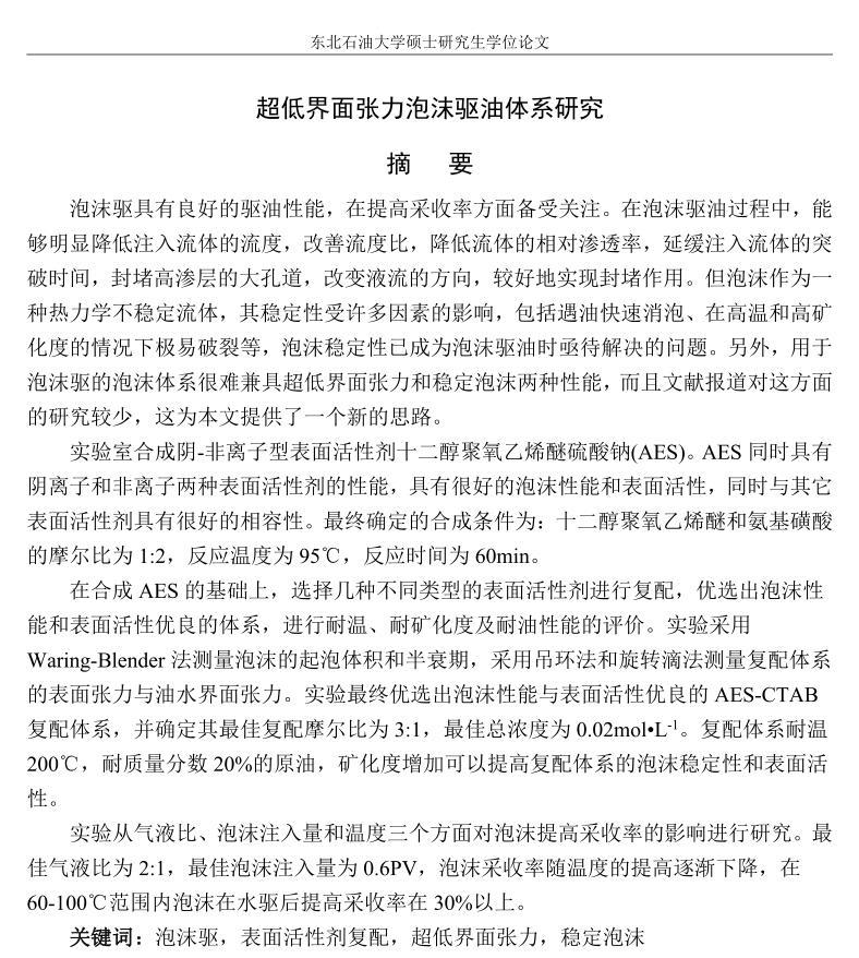超低界面張力泡沫驅(qū)油體系研究