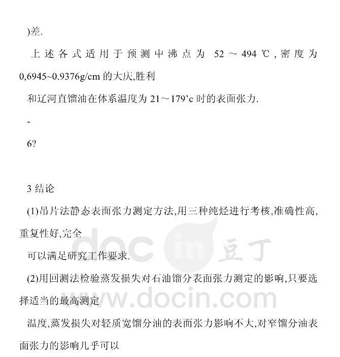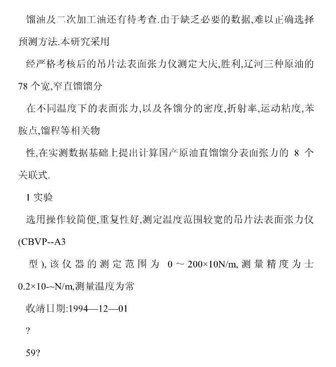 國(guó)產(chǎn)石油餾分表面張力的實(shí)驗(yàn)研究