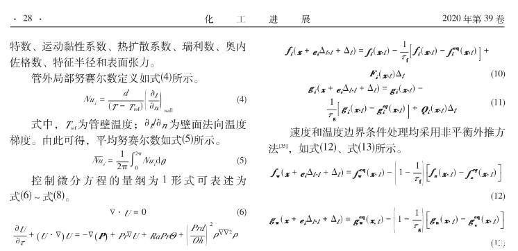 【摘要】:采用格子-玻爾茲曼方法 (LBM)構(gòu)建了考慮表面張力影響下封閉腔體內(nèi)加熱圓柱外自然對流數(shù)學模型。在分別對自然對流與表面張力模型模擬驗證的基礎上,探究了液固表面張力與重力場下浮升力同時作用下加熱圓柱外流體自然對流的傳熱特性。結(jié)果表明,在給定Ra數(shù)下(103≤Ra≤106),隨著表面張力的增大(Oh數(shù)減小),封閉腔體內(nèi)管外自然對流擾動會加劇,流型會變復雜,壁面換熱效率有明顯提高。