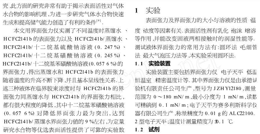 表面活性劑對氣體水合物界面張力的影響