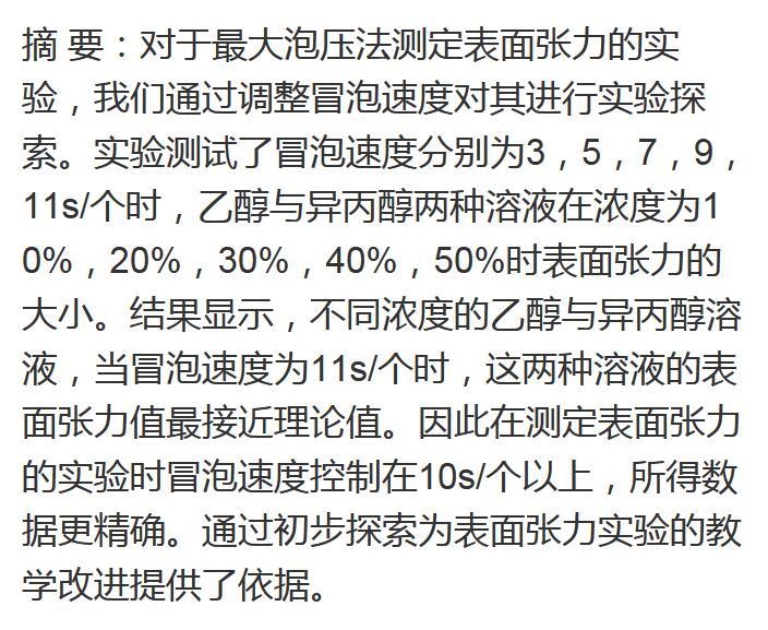 表面張力測定實驗的改進——冒泡速度對其影響的初探