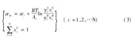 大多數(shù)關(guān)于液體混合物表面張力的描述都是建立在將液體表面層看作是一個(gè)氣液相之間的獨(dú)立的體系的假設(shè)之上的,基于這一假設(shè),結(jié)合經(jīng)典熱力學(xué)理論,可導(dǎo)出關(guān)于液體混合物表面張力的計(jì)算公式Bulter首先于1932年從熱力學(xué)理論出發(fā),導(dǎo)出液體混合物表面張力的理論公式: