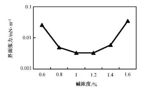 堿、表面活性劑濃度變化對(duì)三元復(fù)合體系界面張力的影響