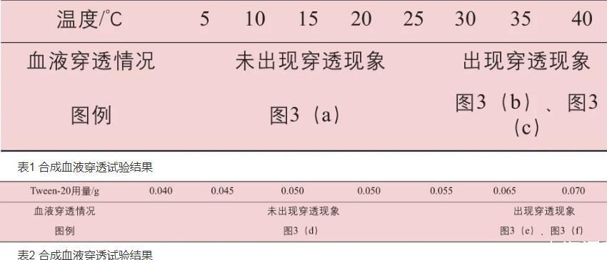 溫度和Tween-20用量對(duì)合成血液穿透試驗(yàn)的影響