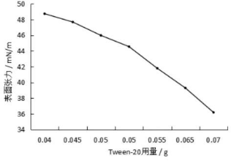 圖2不同Tween-20用量下合成血液的表面張力變化