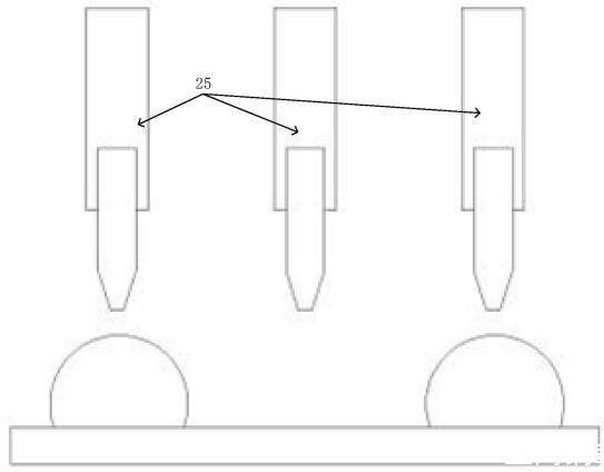 步驟S3:通過印刷機構將摻入碳粉并通入正電荷的UV油墨鋪滿在紙張上,由于紙張上已覆蓋有固化的UV涂層,因此UV油墨在紙張上仍可自由移動,此時通過計算機處理印刷圖案,進而控制印刷機構向指定金屬探針輸送負電荷,其余金屬探針輸送正電荷,當金屬探針接觸帶正電荷UV油墨時,通過異電荷相互吸附的原理,UV油墨將向金屬探針聚攏;其余探針通過同電荷相互排斥的原理,UV油墨將向金屬探針反方向逃逸,待金屬探針收回,UV油墨將因表面張力短時間內(nèi)無法流平,再對紙張表層所有UV油墨進行最終固化;