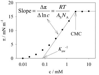 表面濃度和表面吸附量之間單層的差異(等溫線斜率)可以忽略不計(jì),因此表面濃度與在單個(gè)表面活性劑分子的有效面積成反比。