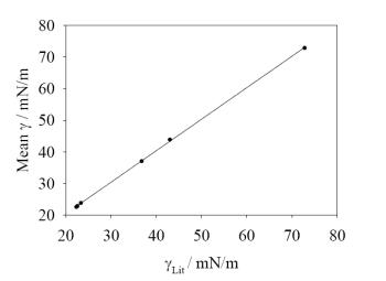 對上述數(shù)據(jù)進行了線性擬合(下圖),相關(guān)系數(shù)可以達到0.999,證明了在整個表面張力范圍內(nèi)Kibron傳感器的極好的準(zhǔn)確度。